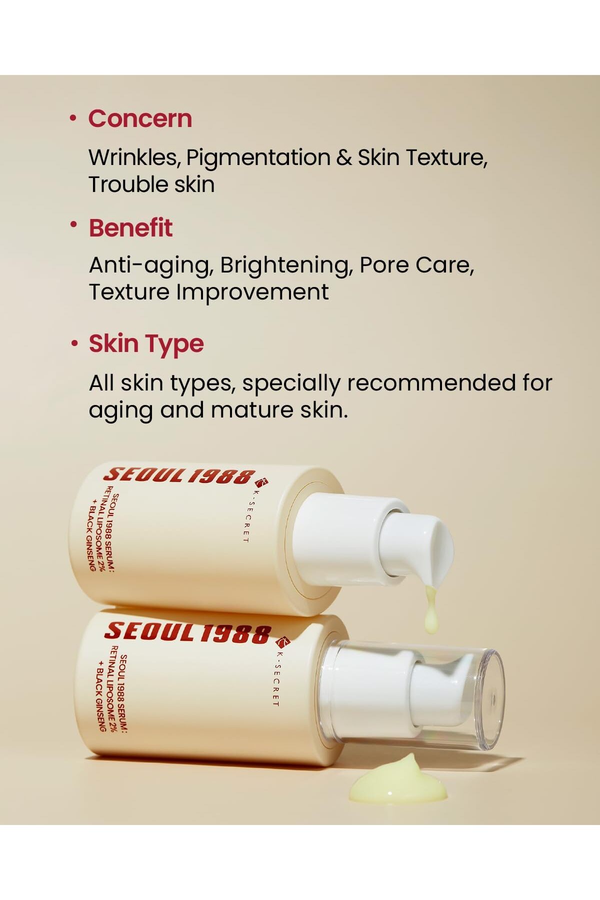 اسم المنتج :سيروم ريتينال ليبوسوم 2% مع الجينسنغ الأسود 30 مل – سيول 1988 من كيه سيكريت