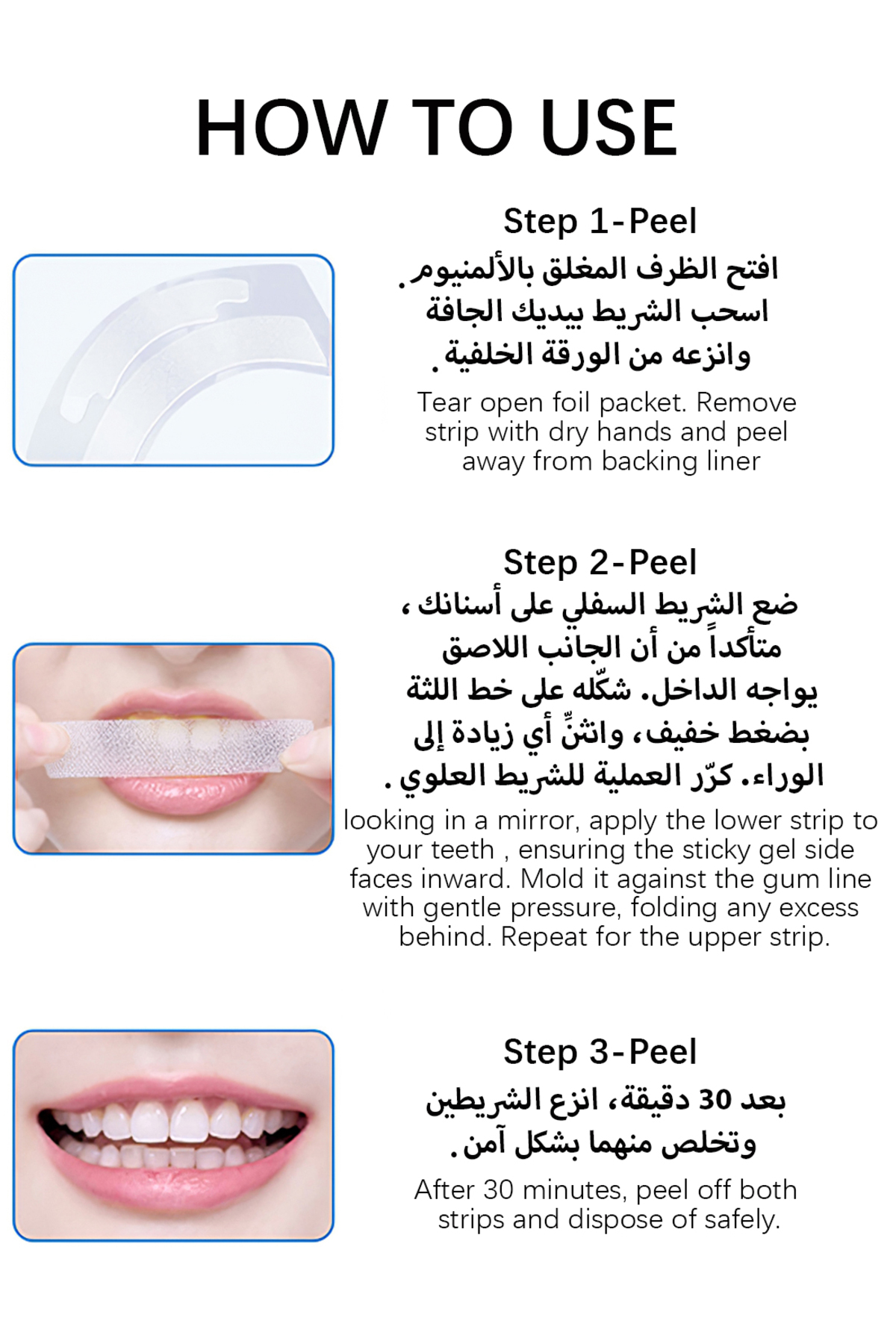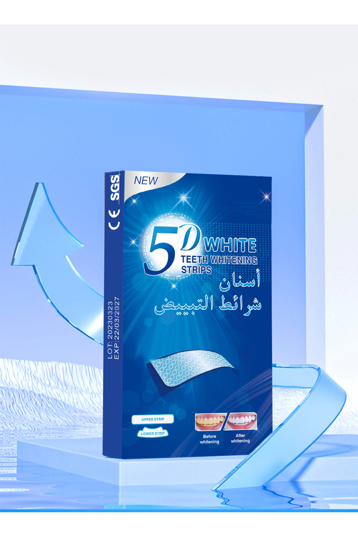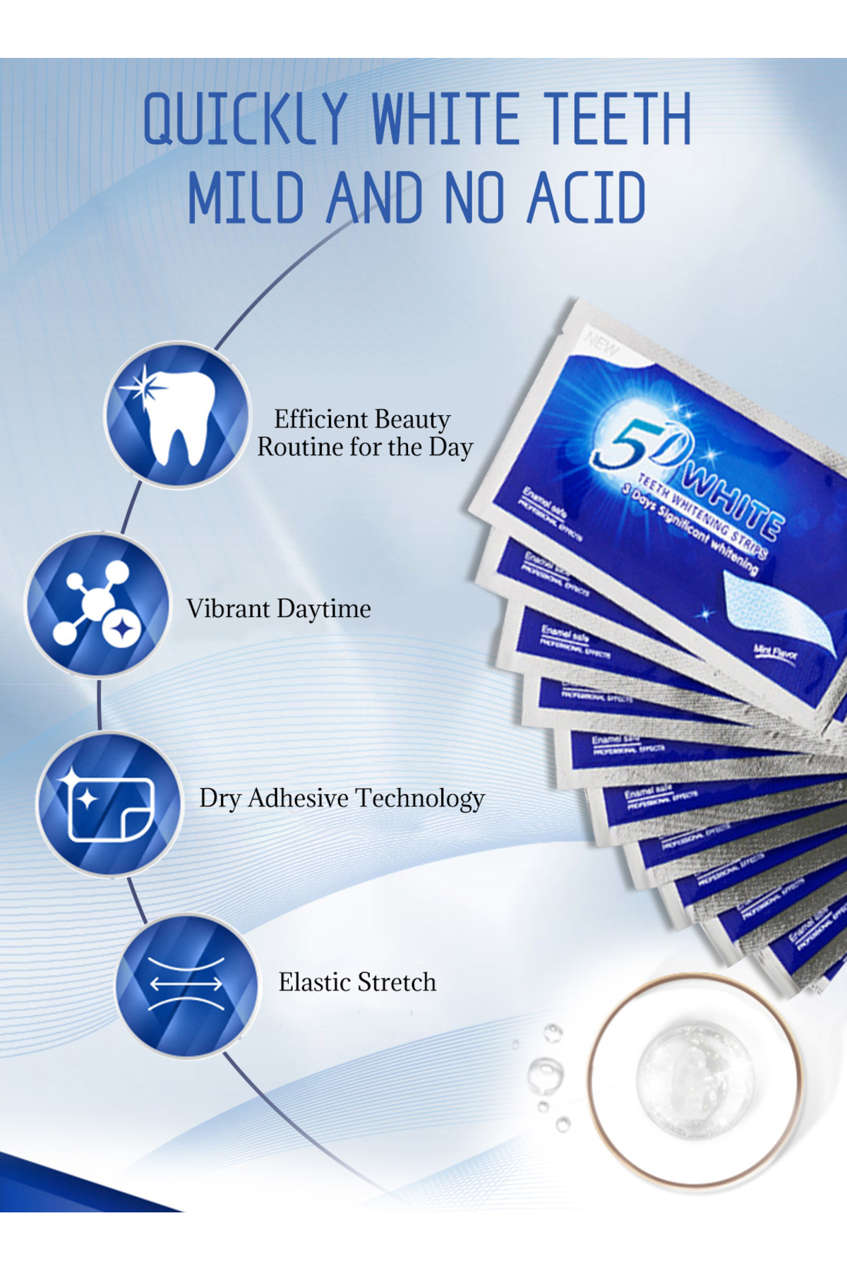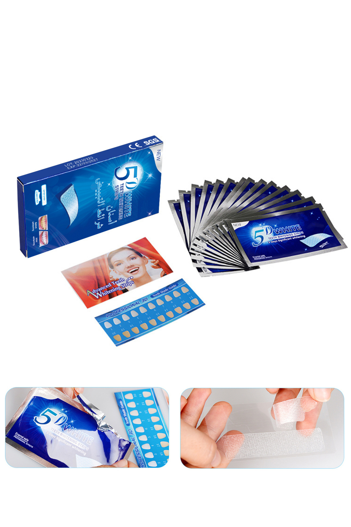 - شرائط تبييض الأسنان يتميز بتقنية 5D White المتقدمة التي توفر نتائج سريعة وفعّالة لتفتيح الأسنان.